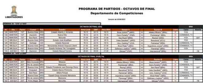 Conmebol divulgou a tabela dos jogos das oitavas da libertadores 2021, com data, horário e onde assistir os confrontos.